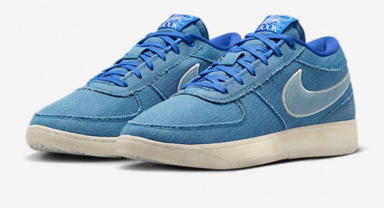 此次新产品是肯塔基校友布克签名鞋Book 2 “Must Be the Denim”配色,这个配色是以肯塔基1996年夺冠时穿着的丹宁面料球衣为灵感设计,辅以肯塔基的球队颜色,还有鞋舌的肯塔基校队队名野猫的元素等等。
